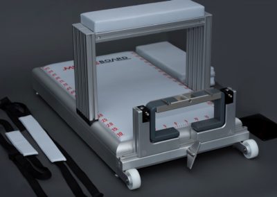 The main frame and two easily mounted and adjustable force sensors, with integrated wheels and a handle for easy moving of the MuscleBoard.