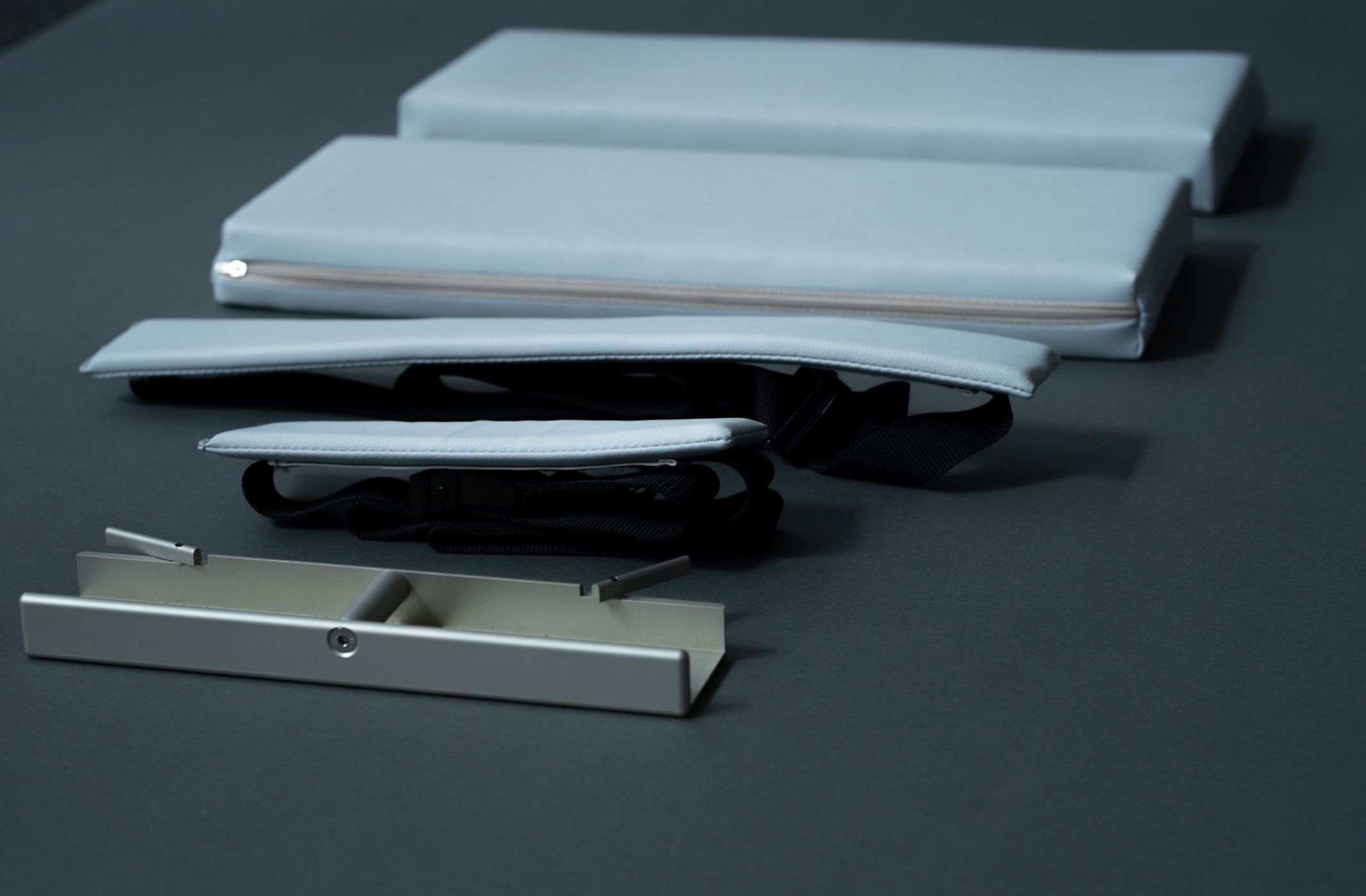 - 3 pillows that are used in hip, Nordic hamstring and knee extensor strength testing.